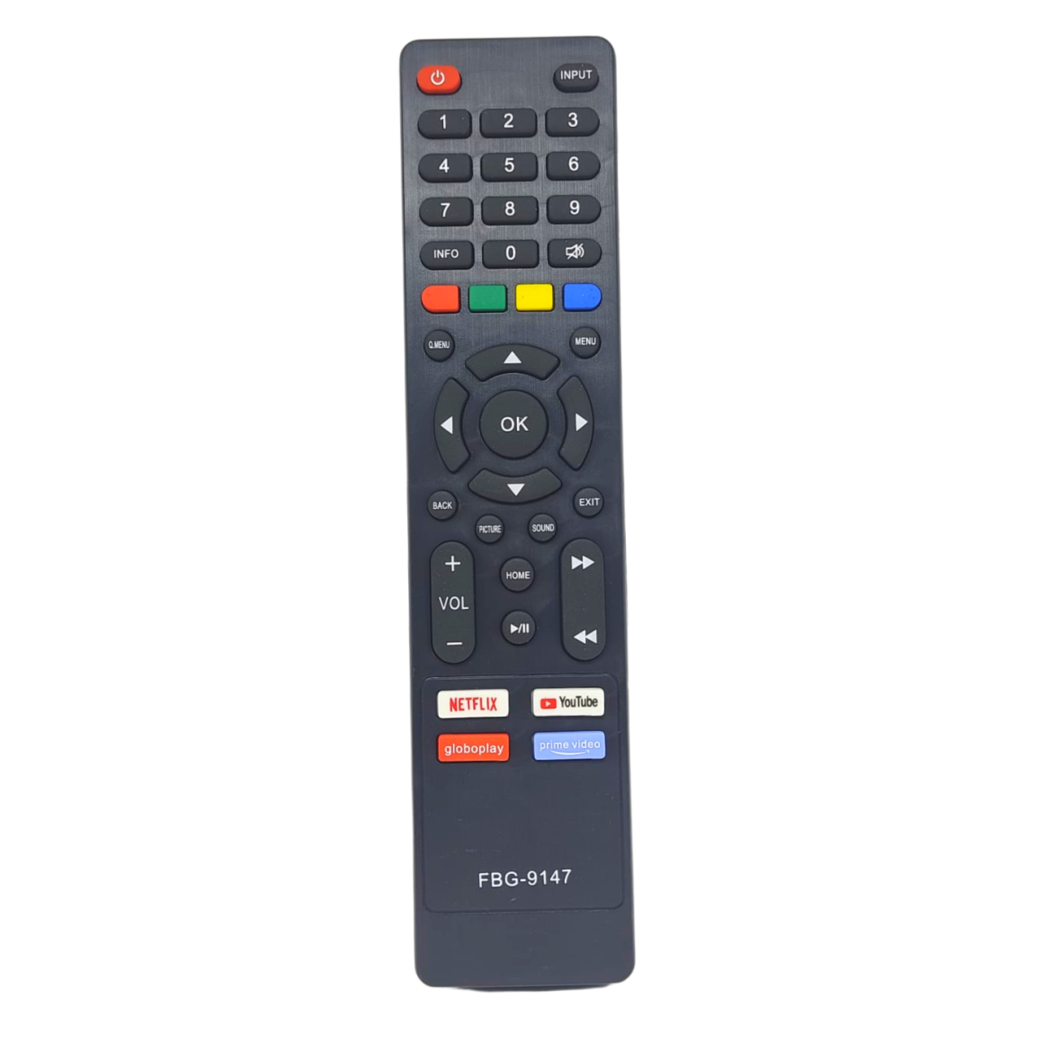 O Controle Smart FBG-9147 foi desenvolvido para garantir praticidade e compatibilidade com diversas TVs Smart da Multilaser. Fabricado com plástico resistente e teclas macias, oferece durabilidade e conforto ao manusear. O LED transmissor de alta qualidade assegura resposta rápida e eficiente a cada comando, proporcionando uma experiência fluida ao usuário. Ideal para substituir controles originais, mantém funcionalidade total com botões dedicados às principais funções de streaming como Netflix, YouTube, Globoplay e Prime Video.